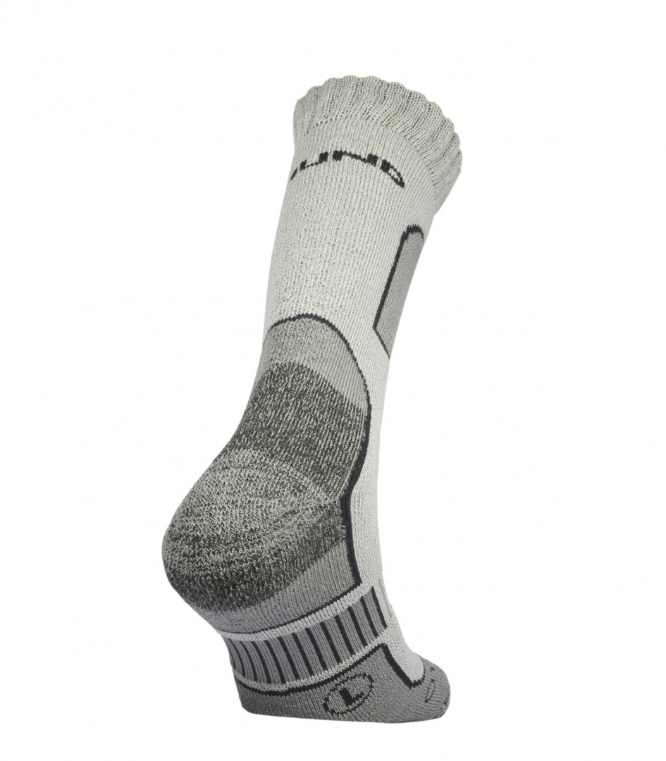 Носок из мериносовой шерсти, усиленной интеллектуальным волокном OUTLAST®, которое генерирует микроклимат между волокном и кожей, сохраняя тепло, когда оно генерируется в избытке и высвобождает его, когда это необходимо. Дополнительное утолщение, созданное двойным плетением, для обеспечения комфорта на неровной поверхности. Эластичная вставка на стопе для предотвращения волдырей или ссадин. Мягкие швы, чтобы избежать дискомфорта.