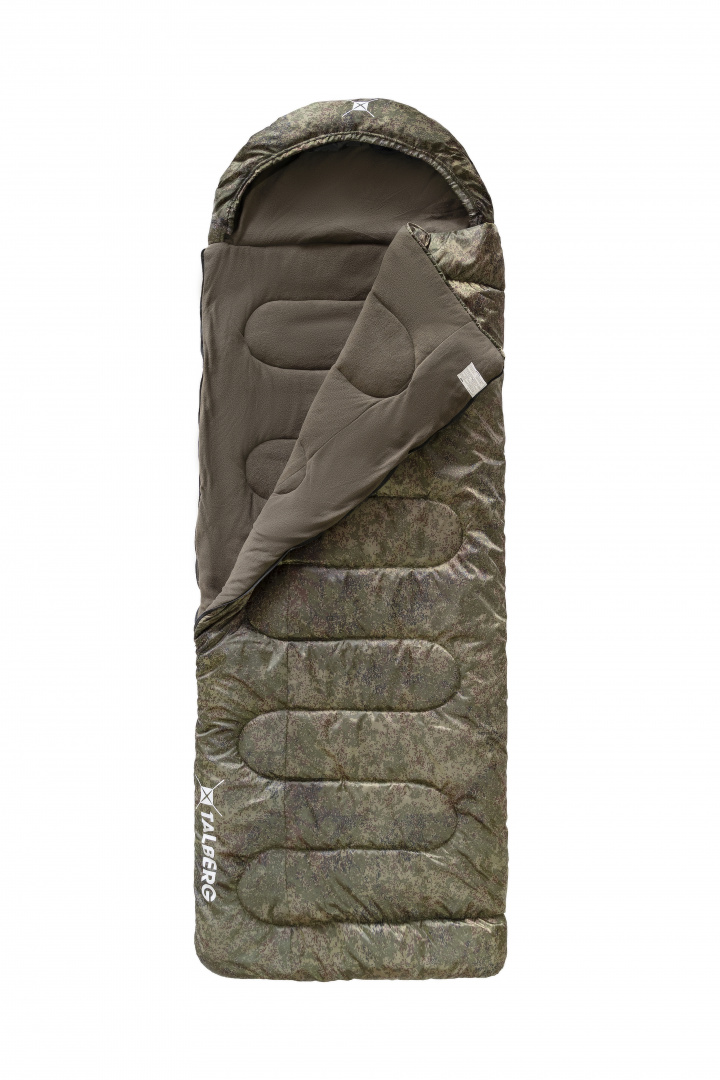 Зимний спальник для охотниколв, рыболовов, туристов и любителй стиля "милитари". Новый синтетический утеплитель Varmloft HQ с силиконизированными волокнами, надежно держит тепло, подкладка выполнена из мягкого и гипоаллергенного флиса, плотностью 180 г/м2. Двойная молния с технологией "внахлест" для дополнительной защиты от холода. Возможность состегивания. Сезонность осень-зима. Комфорт вместе с Talberg!